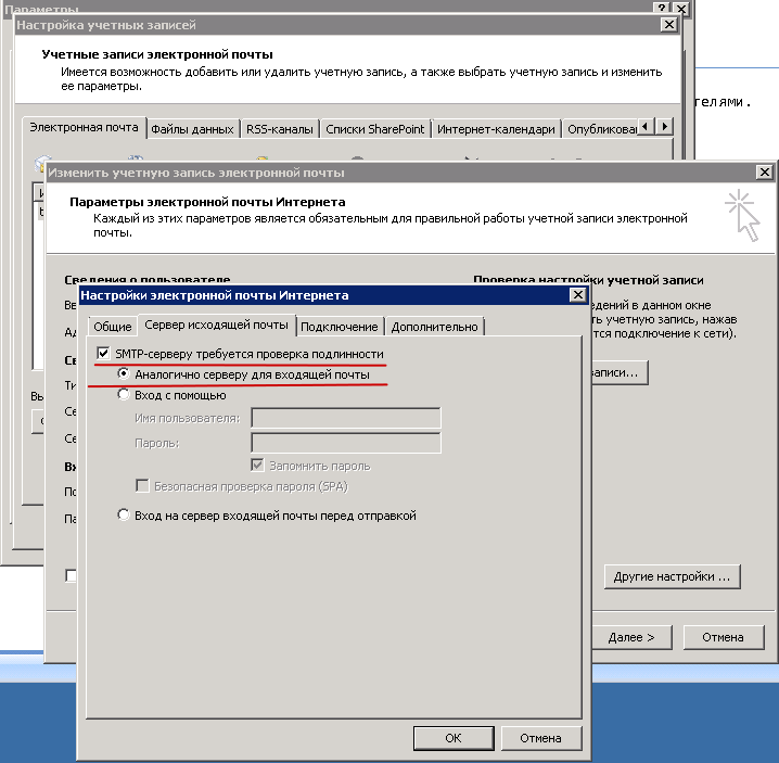 | Сервер исходящей почты (SMTP сервер) | mail.samtel.ru |