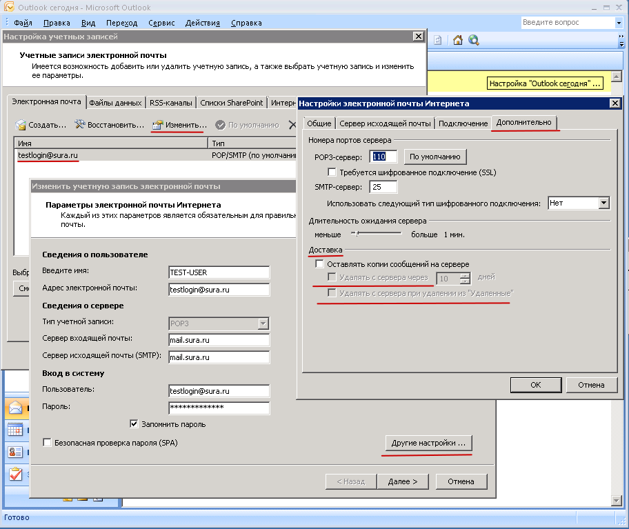 | Сервер входящей почты (POP3, IMAP сервер) | mail.samtel.ru |